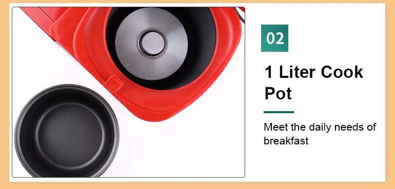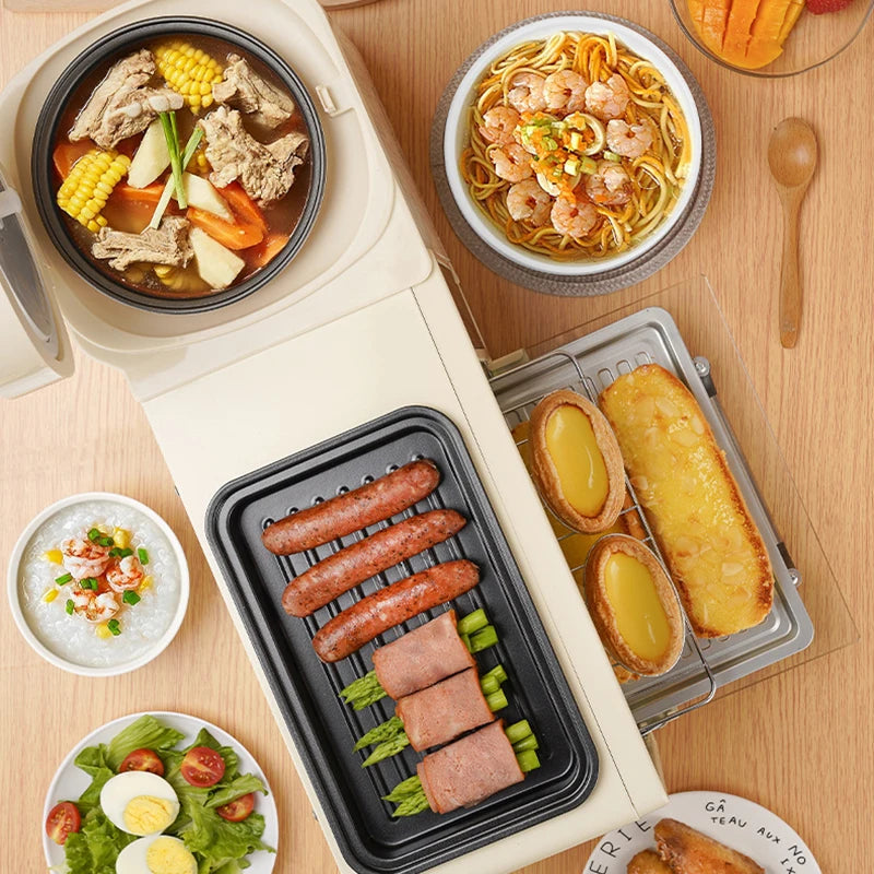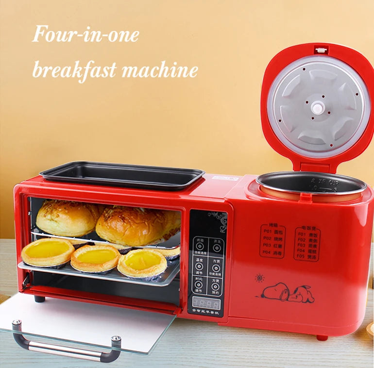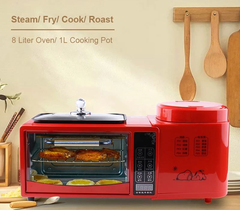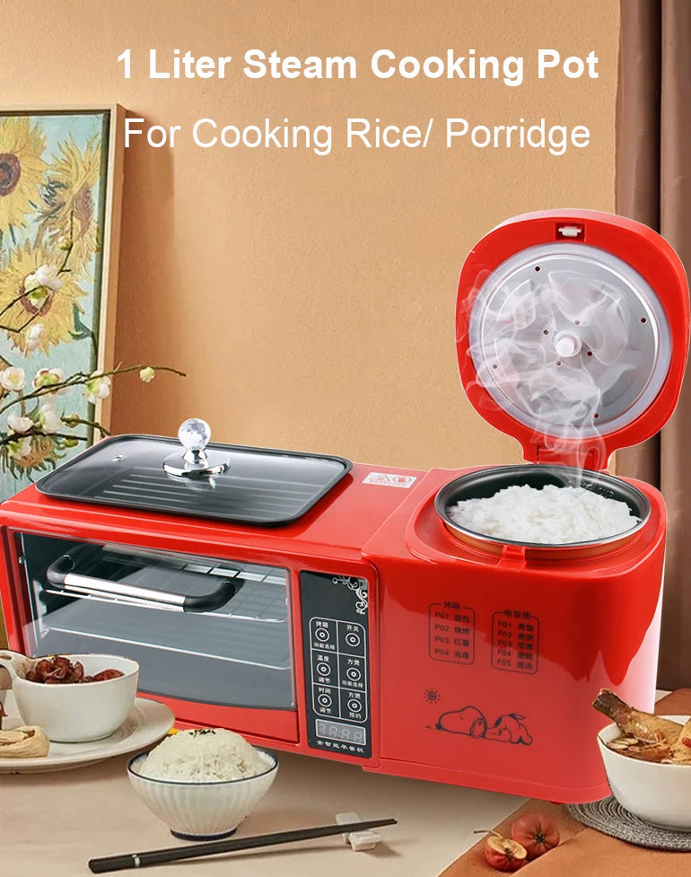 3-in-1 Breakfast Machine Rice Cooker Soup Stew Pasta Cooking Pot Food Steamer Bread Pizza Oven Eggs Omelette Frying Pan Toaster