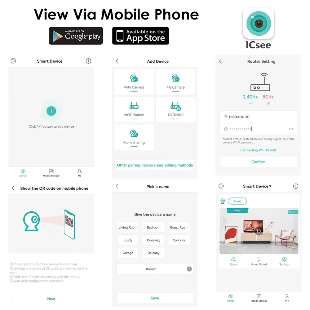 Support iOS /Android with the free app iCsee, You can share it with up to max 3 family members as needed, and multiple person viewing are more reassuring.
