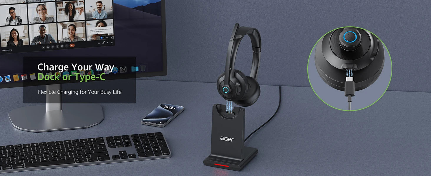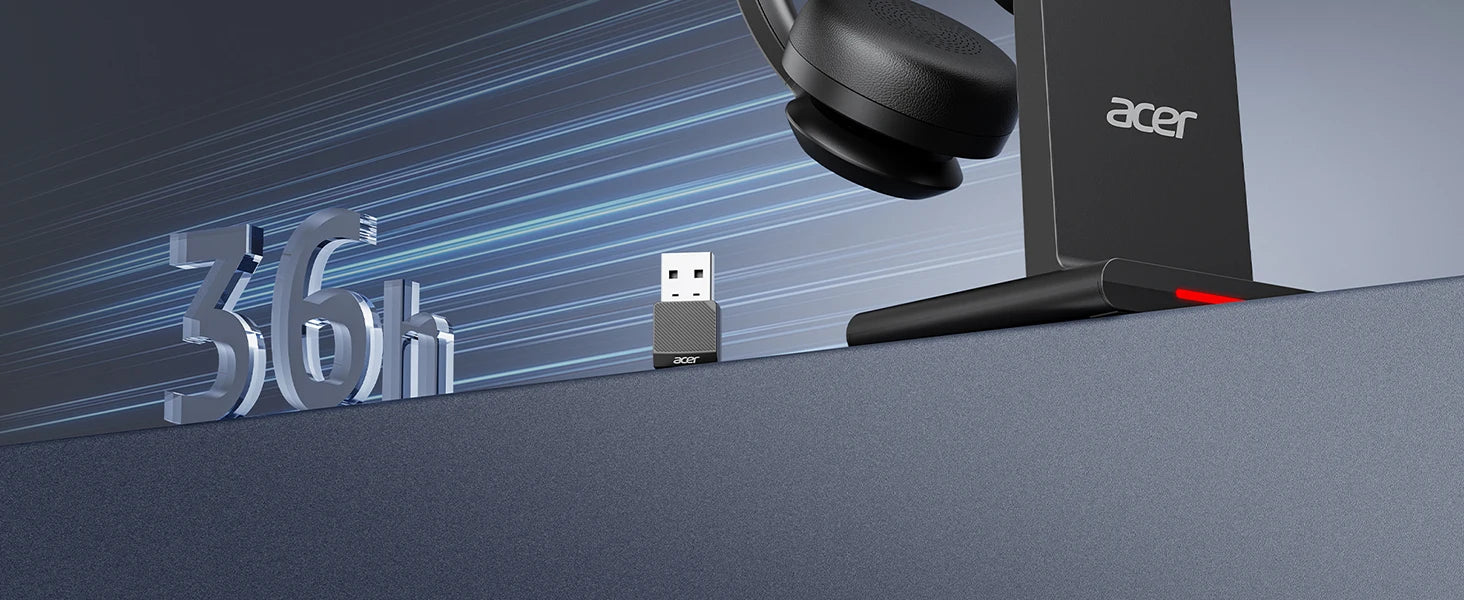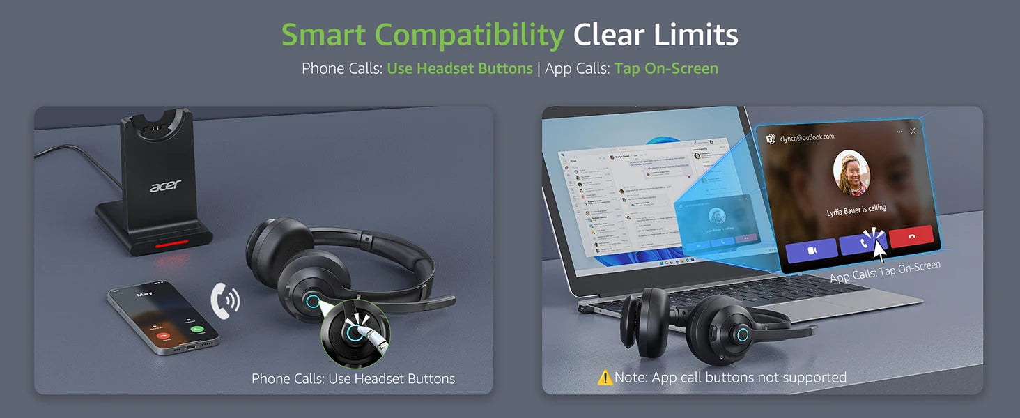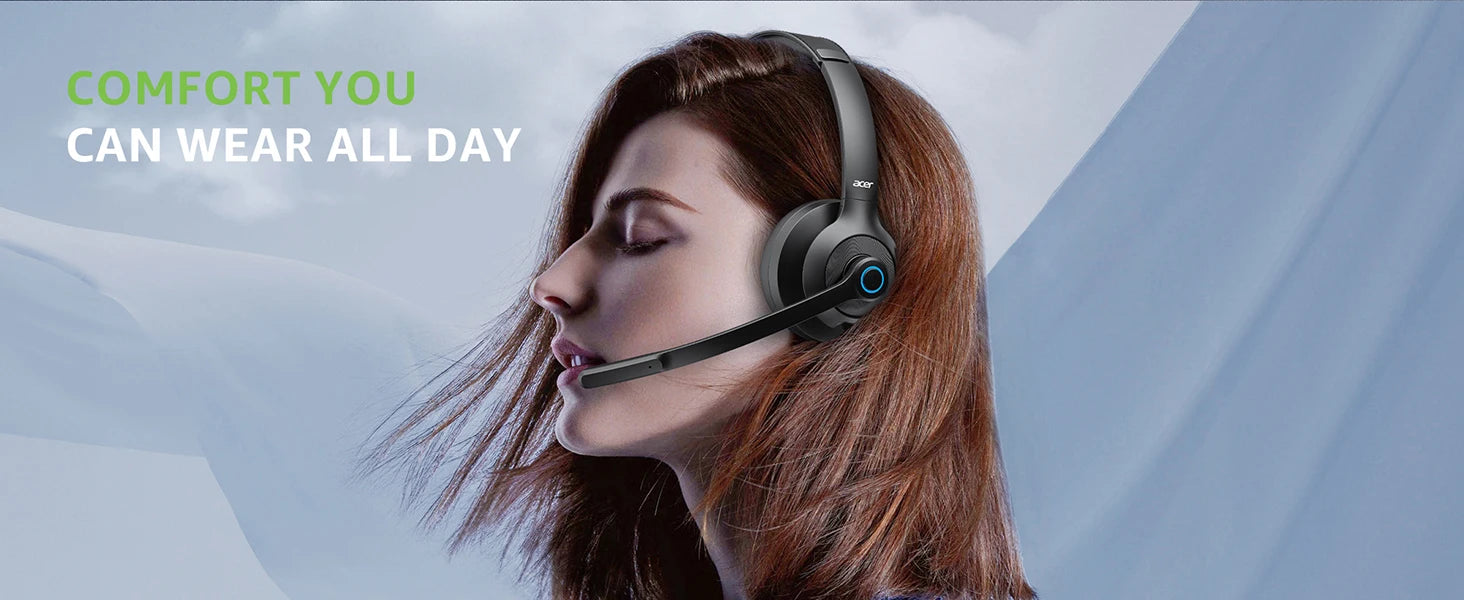 Acer HB02 Call Center Wireless Headset with Mic for Work 2.4G USB Dongle Bluetooth 5.3 Dual Mode Headphones ENC Clear Calls for Teams, Skype, Zoom