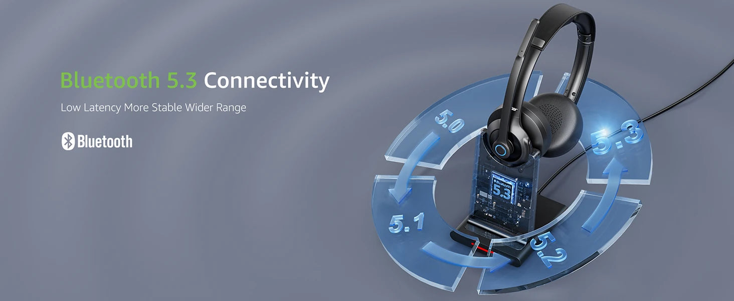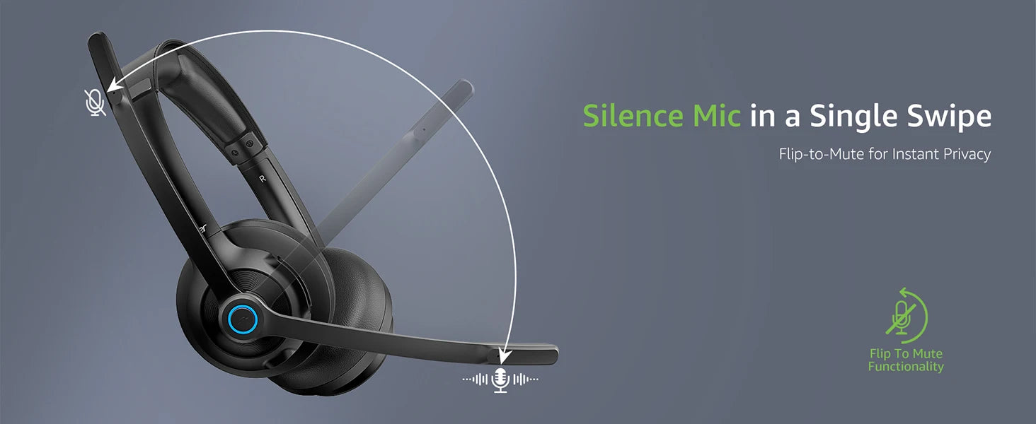 【Instant Mic Mute & Professional Design】Flip mic up to instantly mute mic – protect confidentiality during sensitive talks. Combines dual-mode stability, ergonomic controls, and enterprise-grade durability in one bluetooth headset with microphone.