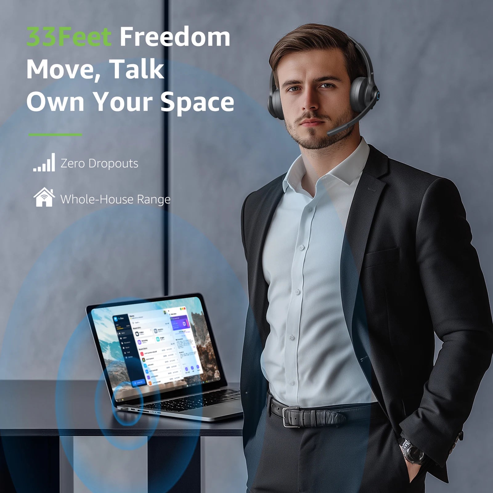 【Studio-Grade Audio Precision for Critical Listening】40mm HIFI drivers deliver true-to-life sound - capturing every vocal nuance in conference calls and critical audio details. Experience uncompressed clarity with this professional wireless headset with mic, elevating interactions from routine meetings to music breaks.
