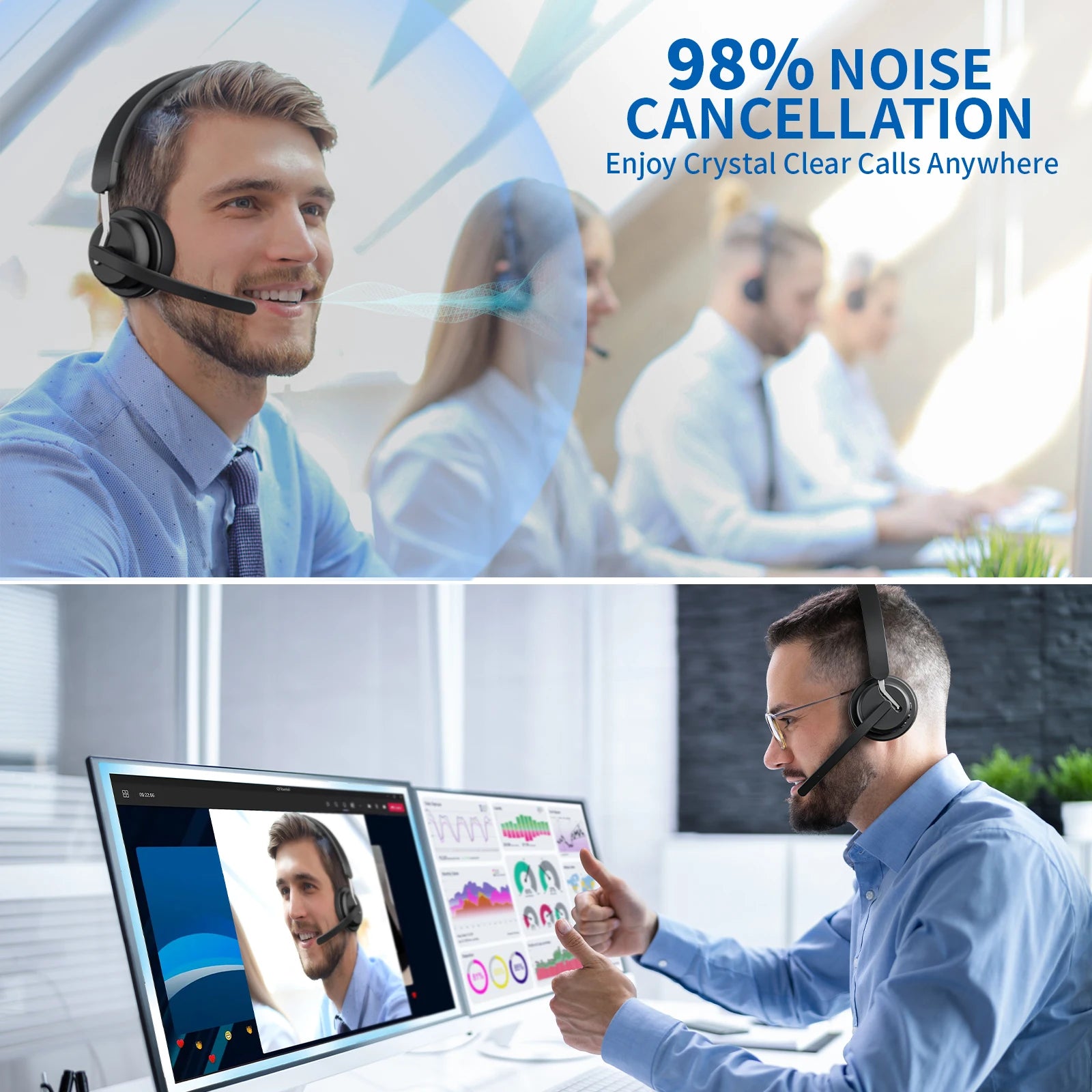 Dual Connection & True Wireless Freedom: Wireless headset with mic for work can simultaneously connect to computer and cell phone or other Bluetooth devices, then you can easily seamlessly switch between video conferences and phone calls. Its wireless working range is up to 49ft/15m, so you can move freely during calls or video meetings, experience true wireless freedom.