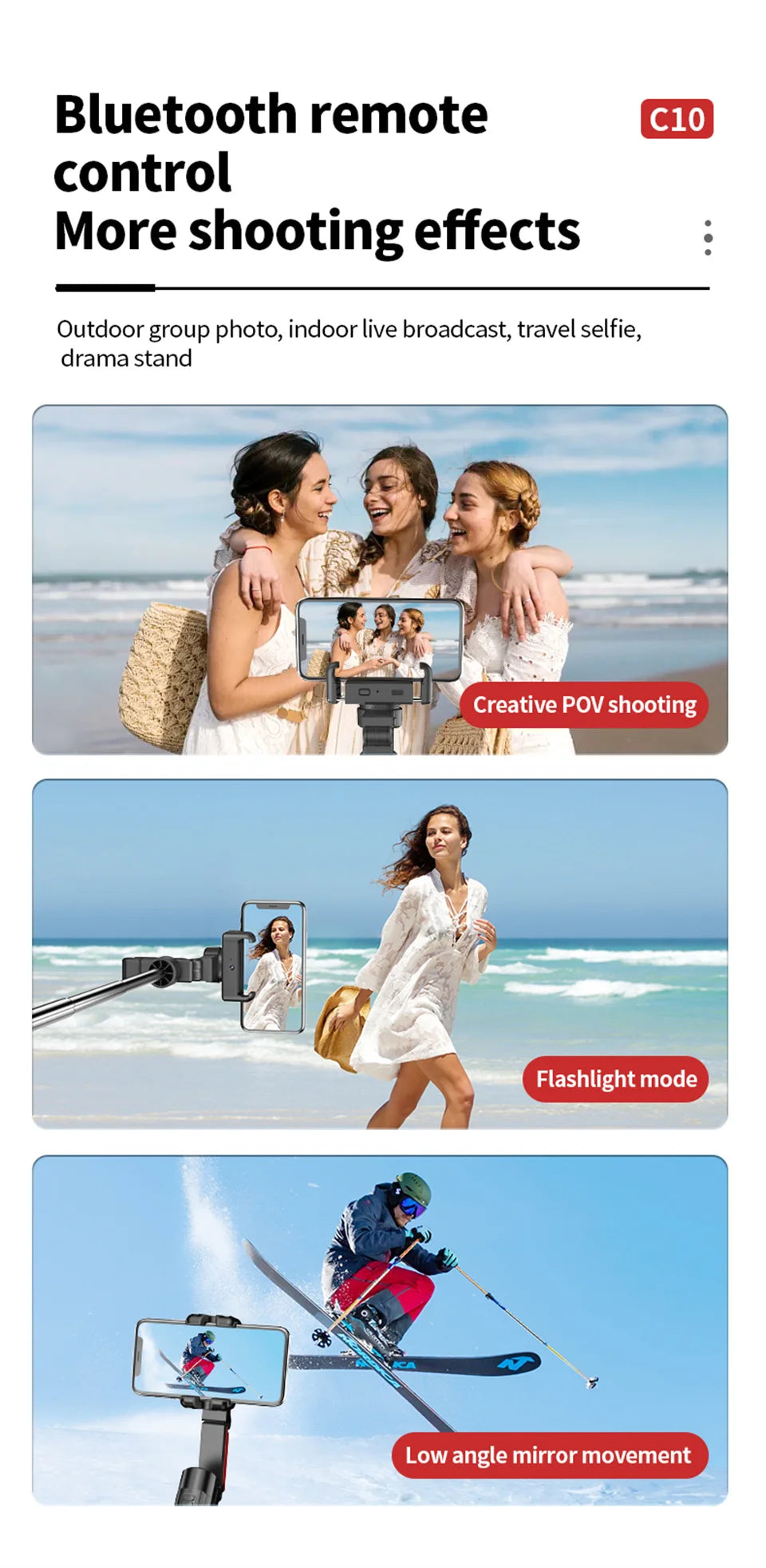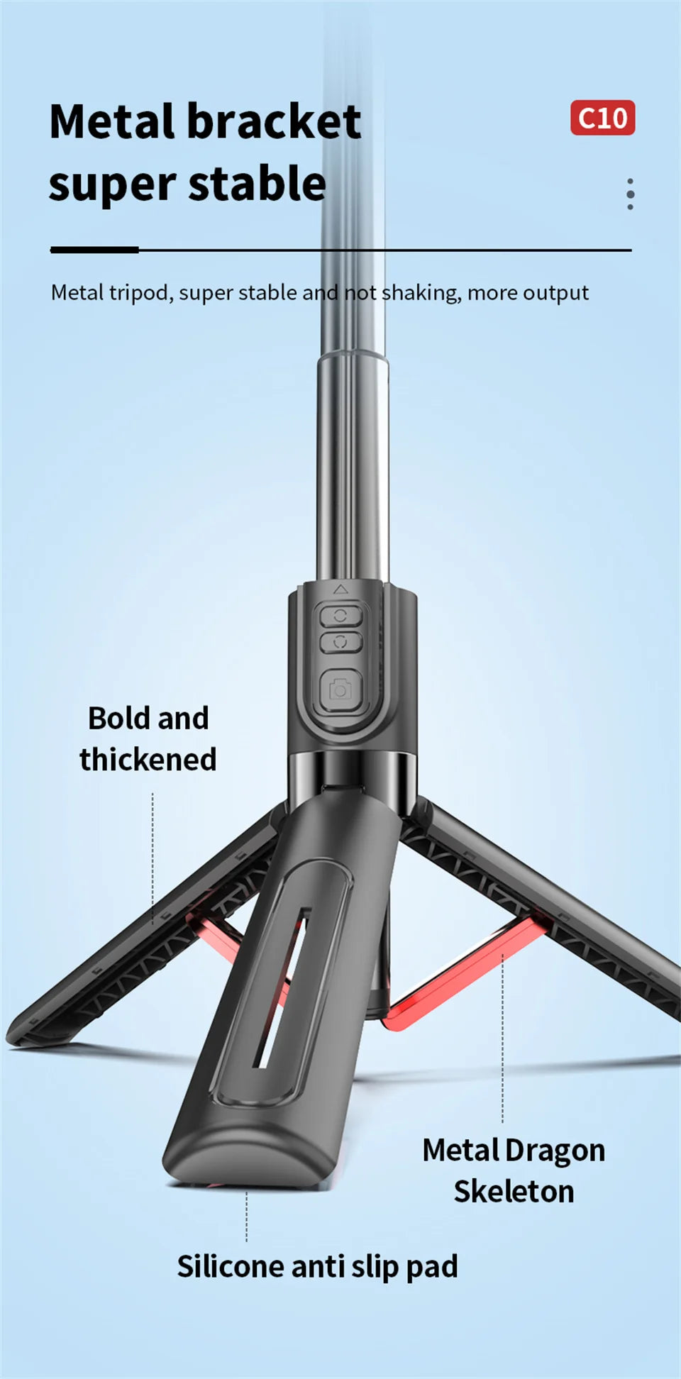 4. High-end stable aluminum alloy rod, non-slip mobile phone clip, stable tripod.