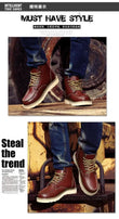 High-top men's leather shoes Fashion motorcycle ankle boots Autumn and winter lace-up casual work men's shoes leather flats