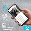 This home security camera recorded video can be saved to an Memory Card (up to 128G, not included) or free lifetime cloud storage base service (record 6s & 7 days loop coverage).
