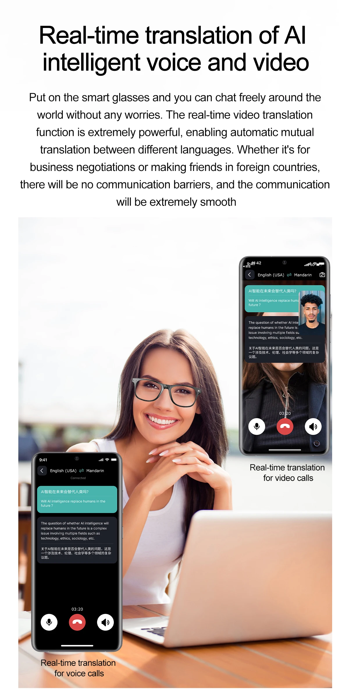 Real time translation: Supports AI intelligent voice and video real-time translation, capable of translating over 163 languages to meet international communication needs.
