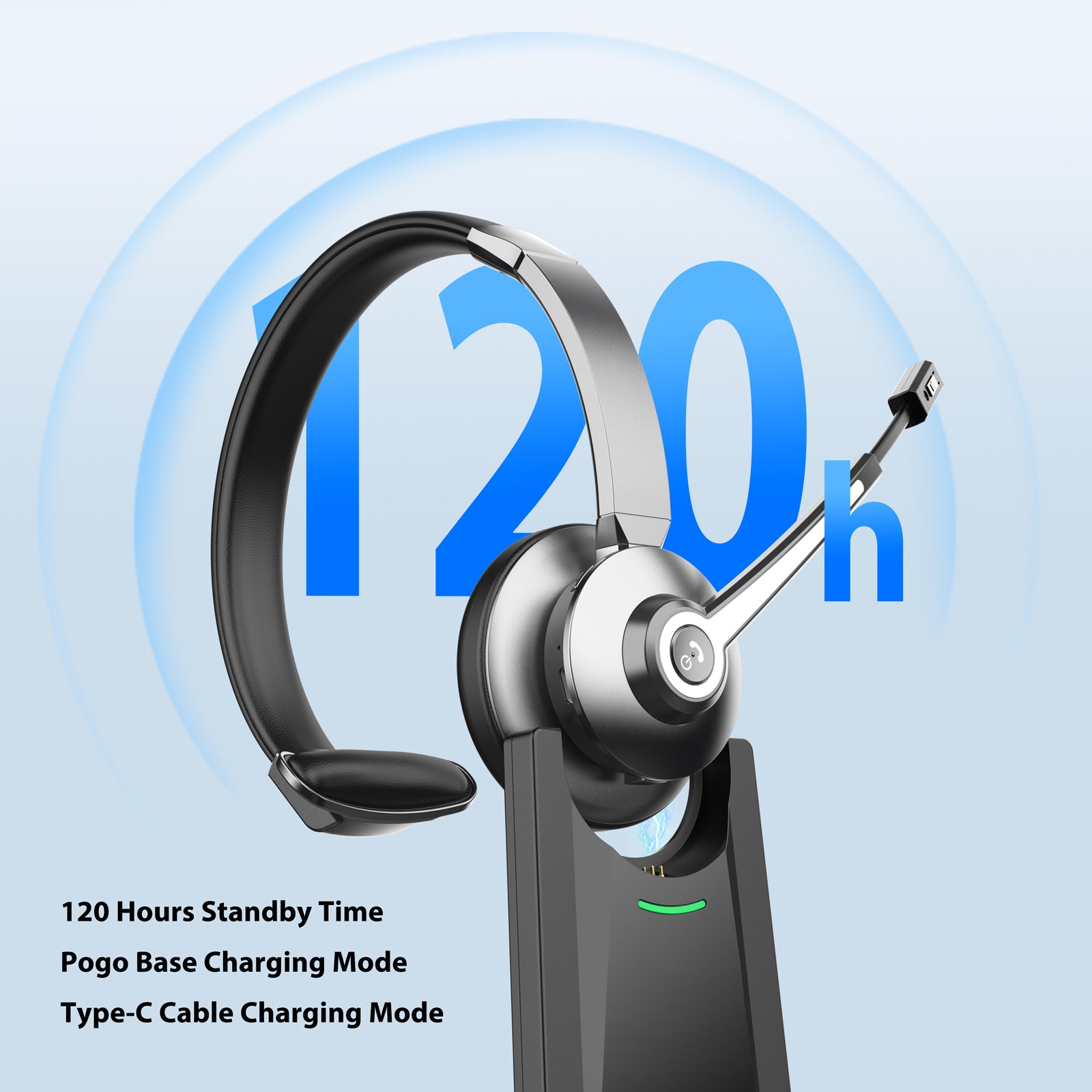 The single-ear (monaural) on-ear design allows you to stay aware of your surroundings while working. Lightweight construction, soft ear padding, and an adjustable headband help reduce fatigue during extended use, making it comfortable for long calls and daily wear.
