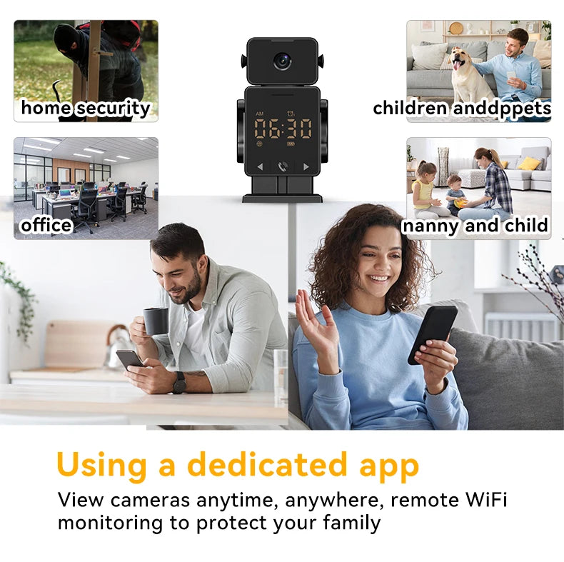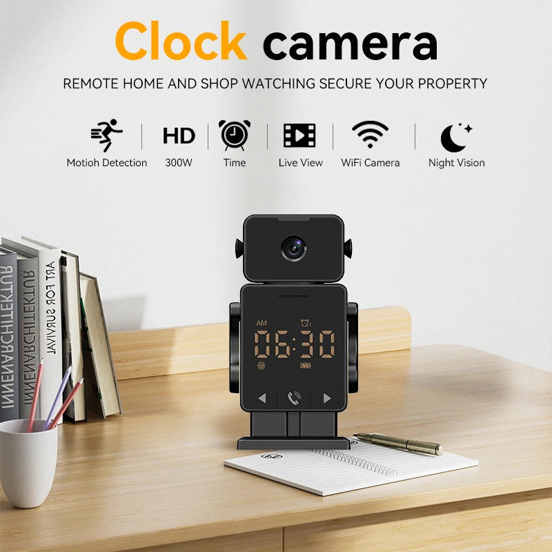 Tuya Smart Home WIFI Robot Camera FHD 2K PIR Detection IR Night Vision Remote Baby Monitor CCTV Security Surveillance Cam Clock